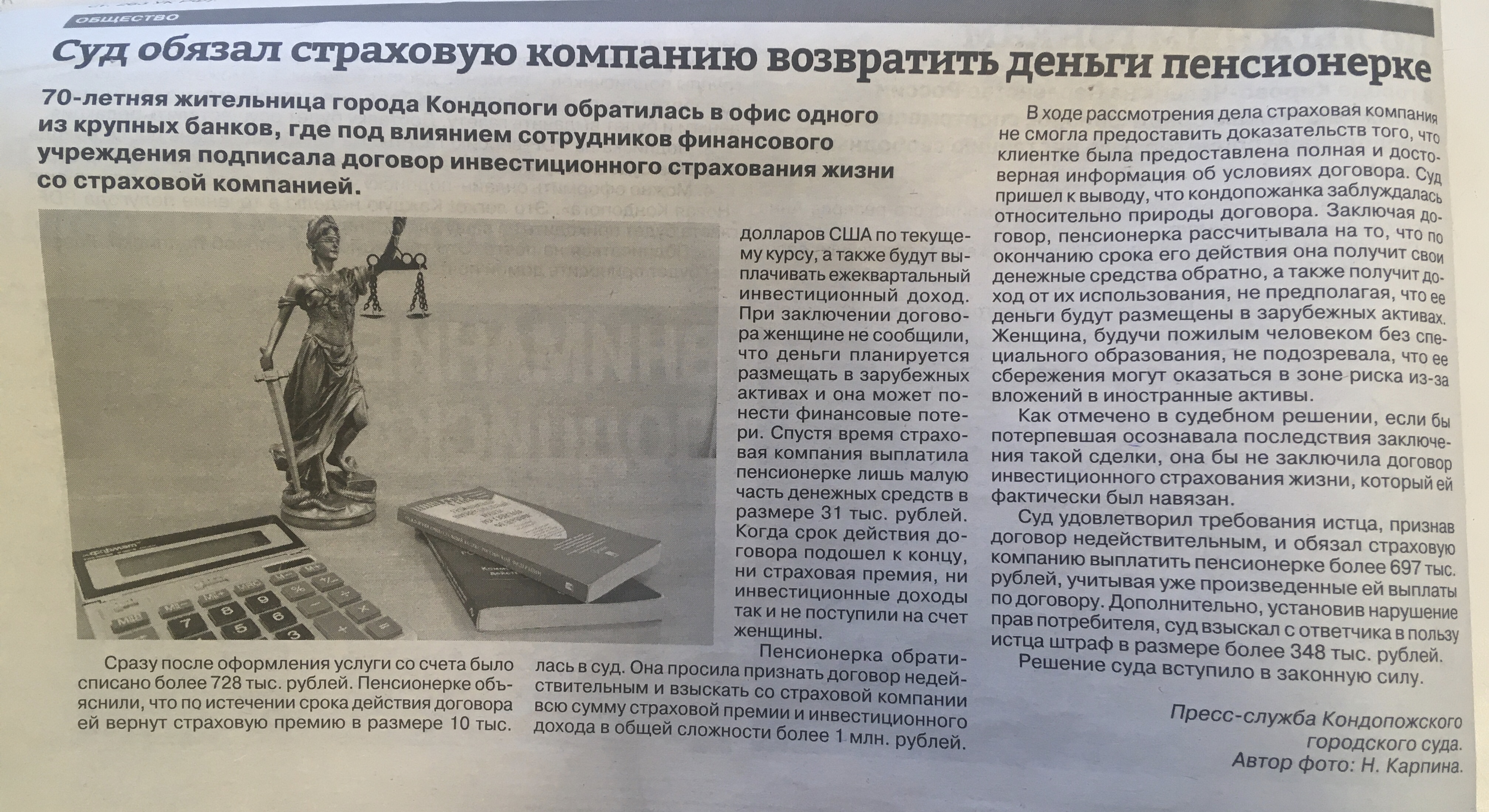 В выпуске газеты «Новая Кондопога» от 26.03.2025 №11 размещены материалы, подготовленные пресс-службой суда.