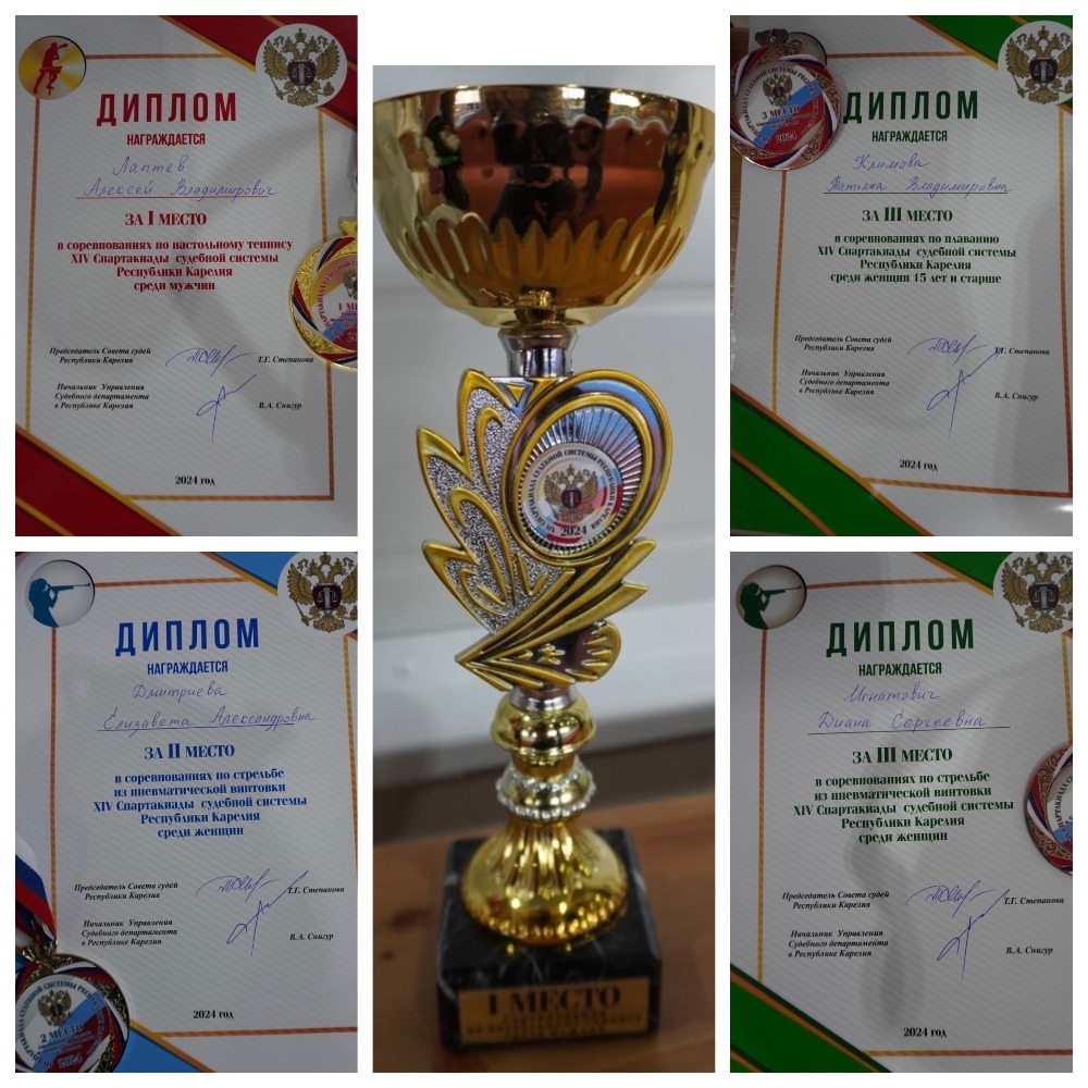 19 октября 2024 года на базе ФГБОУ ВО «Петрозаводский государственный университет» проведена XIV Спартакиада судебной системы Республики Карелия, организаторами которой выступили Совет судей Республики Карелия и Управление Судебного департамента в Республике Карелия. В мероприятии приняли участие 24 команды, состоящие из представителей Верховного и Арбитражного судов Республики Карелия, Управления Судебного департамента в Республике Карелия, Петрозаводского гарнизонного военного суда, городских (районных) судов, мировой юстиции, Совета ветеранов – судей в отставке Республики Карелия, а также гостей из г. Санкт-Петербурга-представителей Третьего кассационного суда общей юрисдикции. Торжественное открытие мероприятия началось с ярких приветственных выступлений и напутственных слов. После стартового свистка для команд состоялась спортивная эстафета «Веселые старты», а для отдельно заявленных участников - соревнования по настольному теннису, плаванию, стрельбе и дартс. Команда Кондопожского городского суда Республики Карелия проявила высокий уровень сплоченности, стремление к победе и отличную физическую подготовку. Энергичная поддержка группы болельщиков создавала особое настроение на протяжении всего праздника. В личном первенстве Кондопожский городской суд Республики Карелия занял следующие призовые места: - первое место в соревнованиях по настольному теннису занял мировой судья судебного участка №2 Кондопожского района Республика Карелия Лаптев А.В.; - второе место в соревнованиях по стрельбе из пневматического оружия заняла Дмитриева Елизавета - дочь судьи Дмитриева А.В., а третье место - секретарь судебного заседания Игнатович Д.С.; - третье место в соревнованиях по плаванию завоевала секретарь суда Климова Т.В. Завершилось мероприятие награждением победителей и призеров памятными кубками, медалями и дипломами. ![]() |